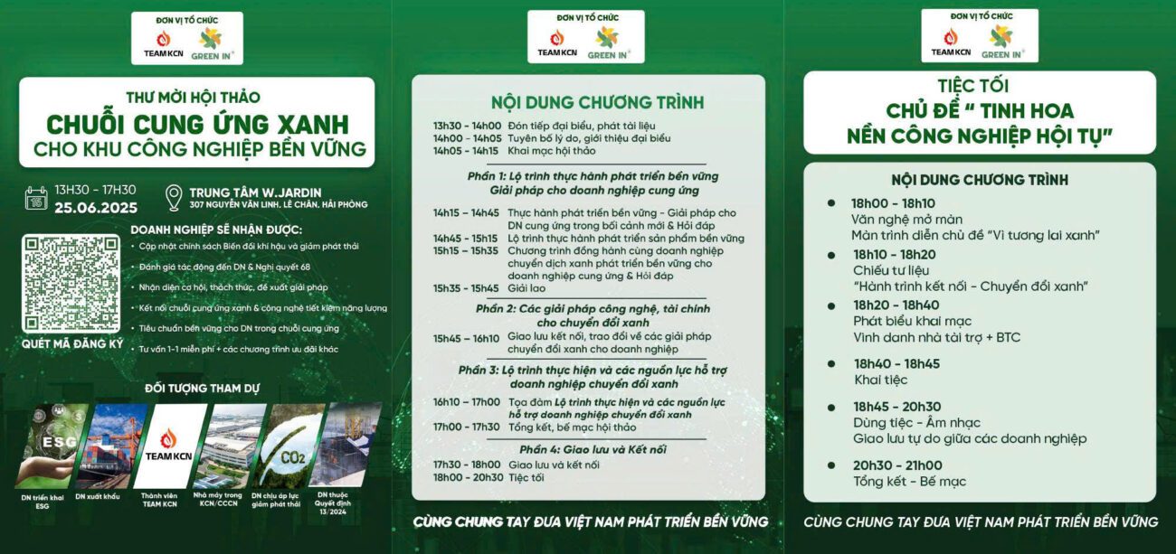 19 6 月 Tin Tức Posted by CEO Nguyễn Thành Công Hội thảo “Chuyển đổi Xanh cho KCN bền vững” tại Hải Phòng: Cơ hội không thể bỏ lỡ! Bạn đang tìm kiếm giải pháp để nâng tầm Khu Công nghiệp (KCN) của mình, hướng tới sự phát triển bền vững và thân thiện với môi trường? ... Continue reading